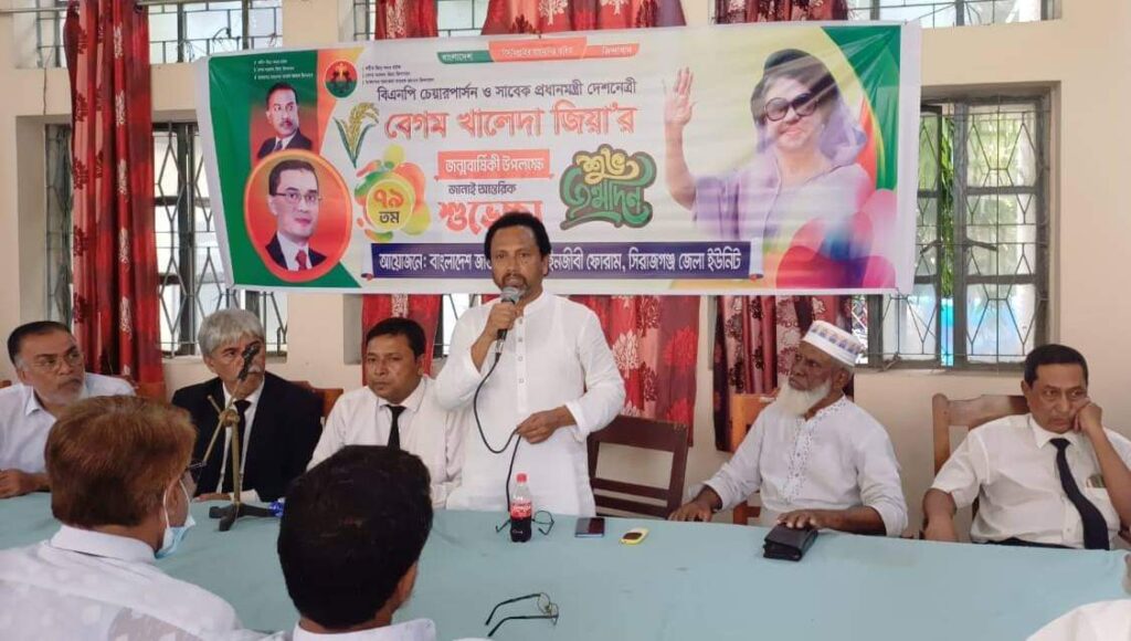 বক্তব্য রাখেন, সিরাজগঞ্জ জেলা বিএনপির আইন বিষয়ক সম্পাদক এ্যাড. রফিক সরকার, প্রশিক্ষণ বিষয়ক সম্পাদক এ্যাড. ইন্দ্রজিৎ সাহা, জেলা আইনজীবী সমিতির সাবেক সভাপতি এ্যাড. আবুল কাশেম, সিনিয়র আইনজীবী এ্যাড. আব্দুল হাই,জেলা আইনজীবী সমিতির সহ-সভাপতি এ্যাড. আলিমুল হক প্রমুখ।