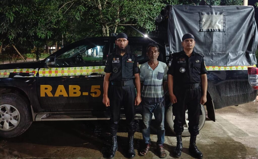 র্যাব-৫, সিপিসি-১ এর নিকট গোয়েন্দা তথ্য আসে যে, রাজশাহী থেকে একজন ব্যক্তি অবৈধ অস্ত্র সংগ্রহের জন্য নওগাঁ জেলার নিয়ামতপুর থানা এলাকায় অবস্থান করছে। গোপন তথ্যের ভিত্তিতে সাদা পোশাকে গোয়েন্দা দল ও একটি চৌকস আভিযানিক দল তৎক্ষণাৎ উক্ত এলাকায় গমন করে এবং প্রাপ্ত গোপন তথ্য এর উপর নির্ভর করে বিবরণ মোতাবেক সন্দেহজনক ব্যক্তিদের উপর নজরদারি বৃদ্ধি করে। পরবর্তীতে নওগাঁ জেলার নিয়ামতপুর থানাধীন রসুল ইউনিয়নের চৌরাপাড়া গ্রামস্থ মসুদ্দিন এর মোড়ে জনৈক মোঃ সিরাজুল ইসলাম এর চায়ের দোকানের সামনে ধানসুরা হতে নওগাঁ আঞ্চলিক পাঁকা রাস্তার উপর অস্থায়ী চেক পোস্ট স্থাপন করে তল্লাশী কার্যক্রম পরিচালনা করার সময় একটি অটোভ্যানের গতিবিধি সন্দেহ জনক হলে অটোভ্যানকে থামিয়ে তল্লাশীকালে অটোভ্যোনে থাকা যাত্রীর শরীর তল্লাশী করে তার শরীরের বিভিন্ন জায়গায় বিশেষ কায়দায় গোঁজা অবস্থায় উল্লেখিত আলামত সমূহ উদ্ধার করা হয়।