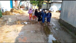 সাপ্টিবাড়ি ইউনিয়নের ৫নং ওয়ার্ডে— কাদায় ডুবে বইয়ের পাতা, ভেজা চোখে হারিয়ে যায়