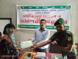 উলিপুর কুড়িগ্রাম প্রতিনিধি: কুড়িগ্রামের উলিপুরে আনসার ও গ্রাম প্রতিরক্ষা বাহিনীর সদস্যদের মাঝে প্রশিক্ষণ সনদ বিতরণ করা হয়। ২০২৫-০৫-২৯ মে রোজ বৃহস্পতিবার সকালে উপজেলার হাতিয়া ইউনিয়নের
