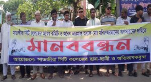 রাজবাড়ী প্রতিনিধি ॥ রাজবাড়ী সদর উপজেলার চন্দনীতে ব্যবসায়ী বাবু বিশ্বনাথ বিশ্বাসের বাড়িতে ডাকাতি ও হামলা করে কুপিয়ে জখম করার প্রতিবাদে মানববন্ধন কর্মসুচী অনুষ্ঠিত হয়েছে। মঙ্গলবার